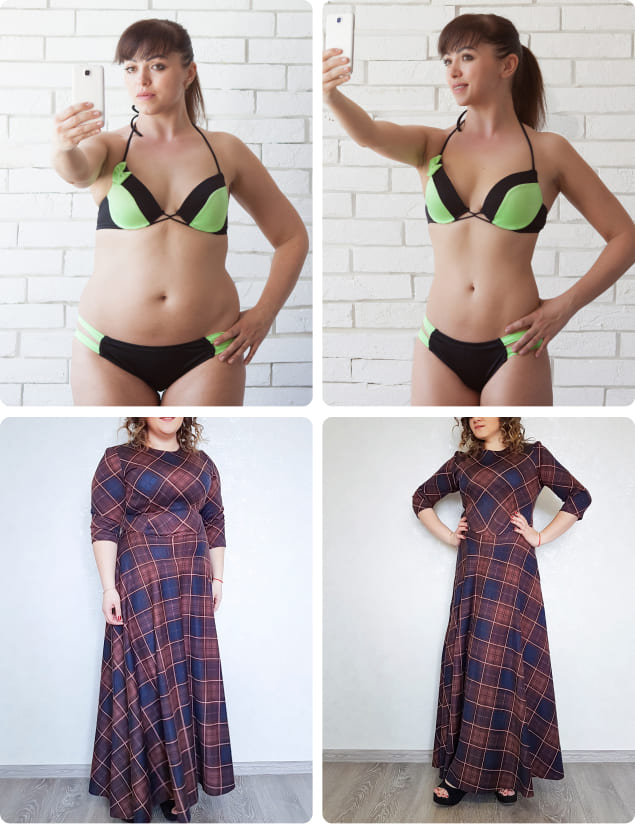 DESPUÉS Toda mi vida tuve una buena figura. Pero ahora, debido a los cambios relacionados con la edad en los procesos de mi cuerpo, adquirí sobrepeso, que no perdí con ejercicio regular ni con una dieta adecuada. O mejor dicho, solía perder peso, pero muy lentamente y luego volvía muy deprisa, a menudo con un incremento importante de peso.